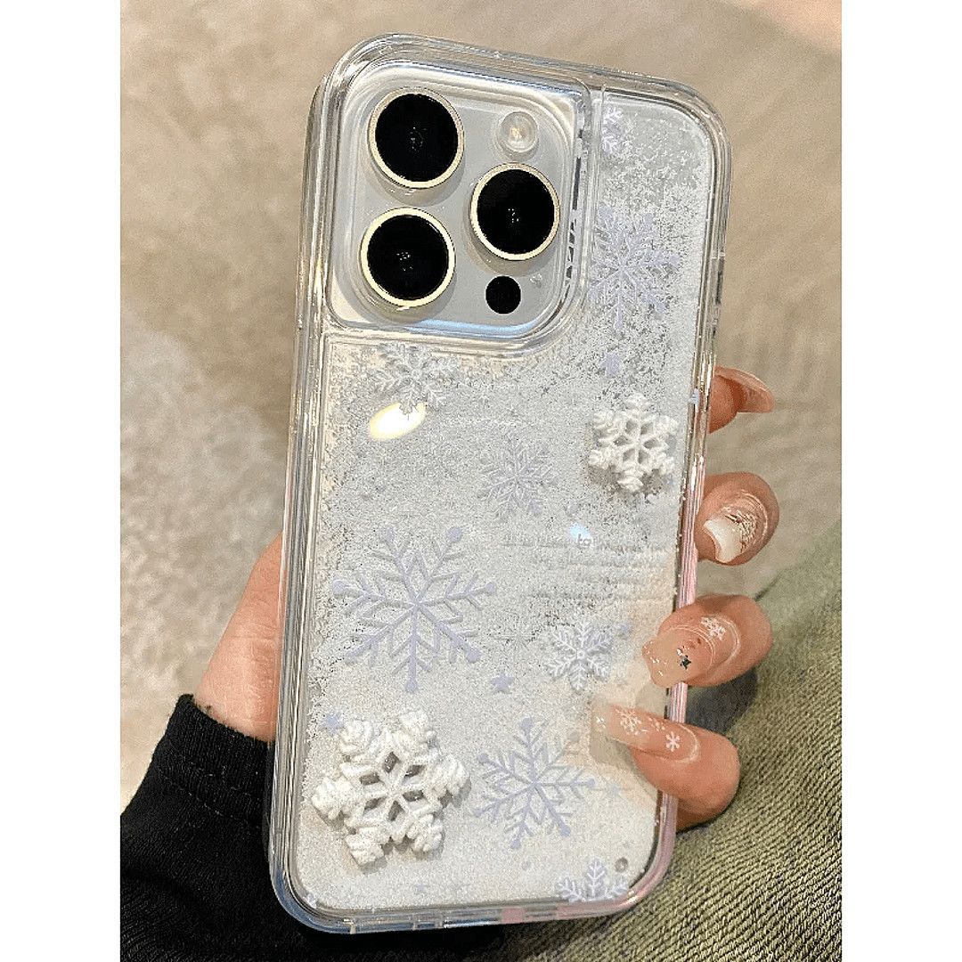 Snowflake Autumn/Winter Suitable for Apple 16promax Transparent 15pro Flowing Sand 14plus Cartoon 12PRO Soft